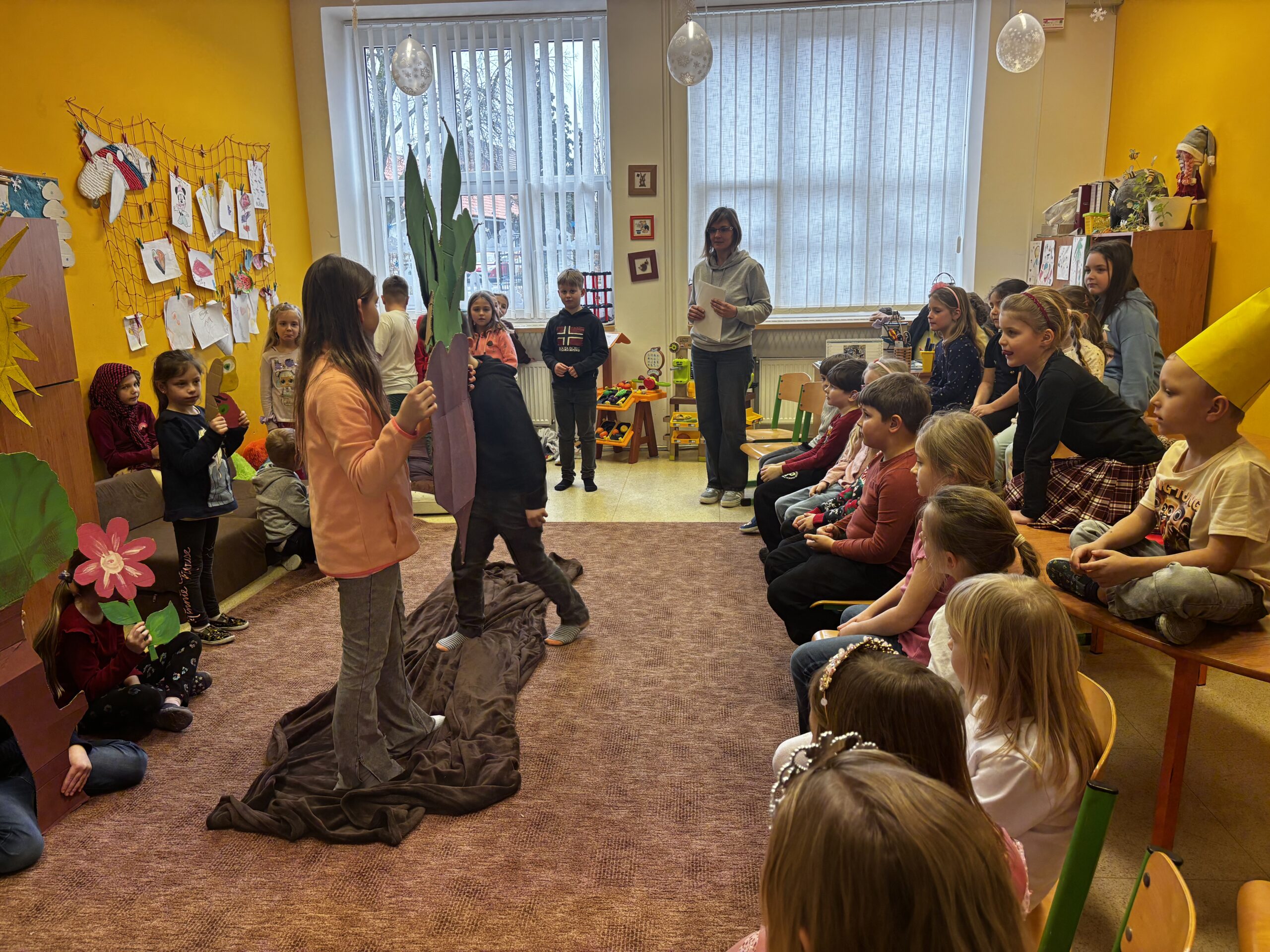 Po celý leden si děti ze školní družiny pod vedením svých vychovatelek nacvičovaly pohádky, které si samy vybraly. Pilně trénovaly svá vystoupení, aby je mohly představit kamarádům z ostatních skupin a zároveň se samy stát diváky jejich her. Děti se tak mezi sebou navštěvovaly a navzájem si připravily krásná divadelní představení.
